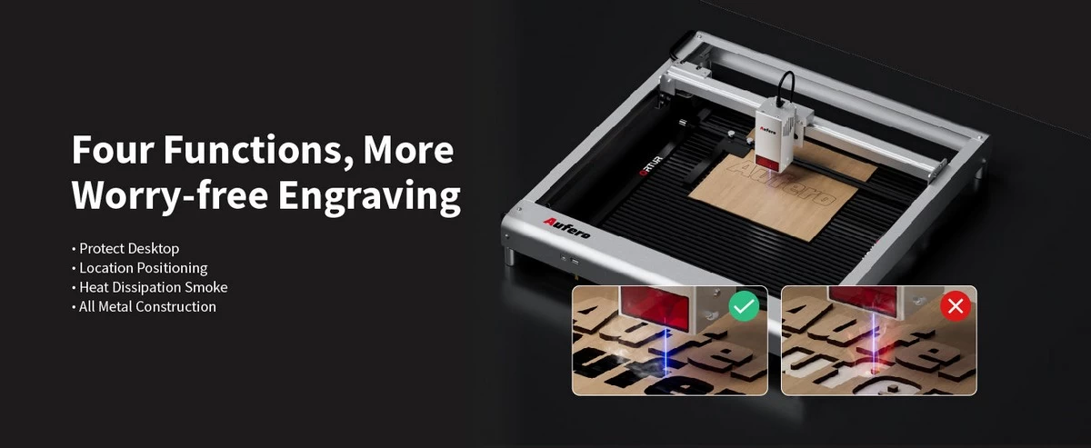 Despite its power, the Aufero AL3 boasts a compact and lightweight design, making it perfect for small workspaces or portable use.