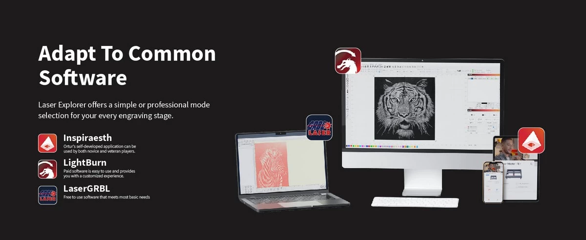 - Control Softwares: LaserGRBL (free), LightBurn (Paid Software), Inspiraesth (Mobile App free)