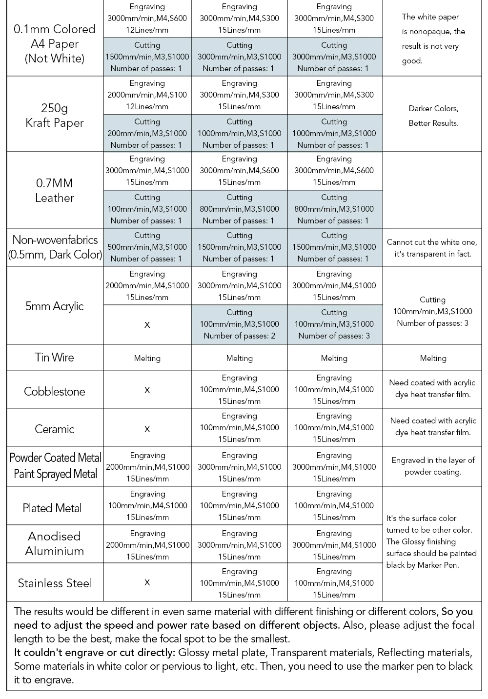 - This product is not recommended for industrial cutting due to its high engraving speed.