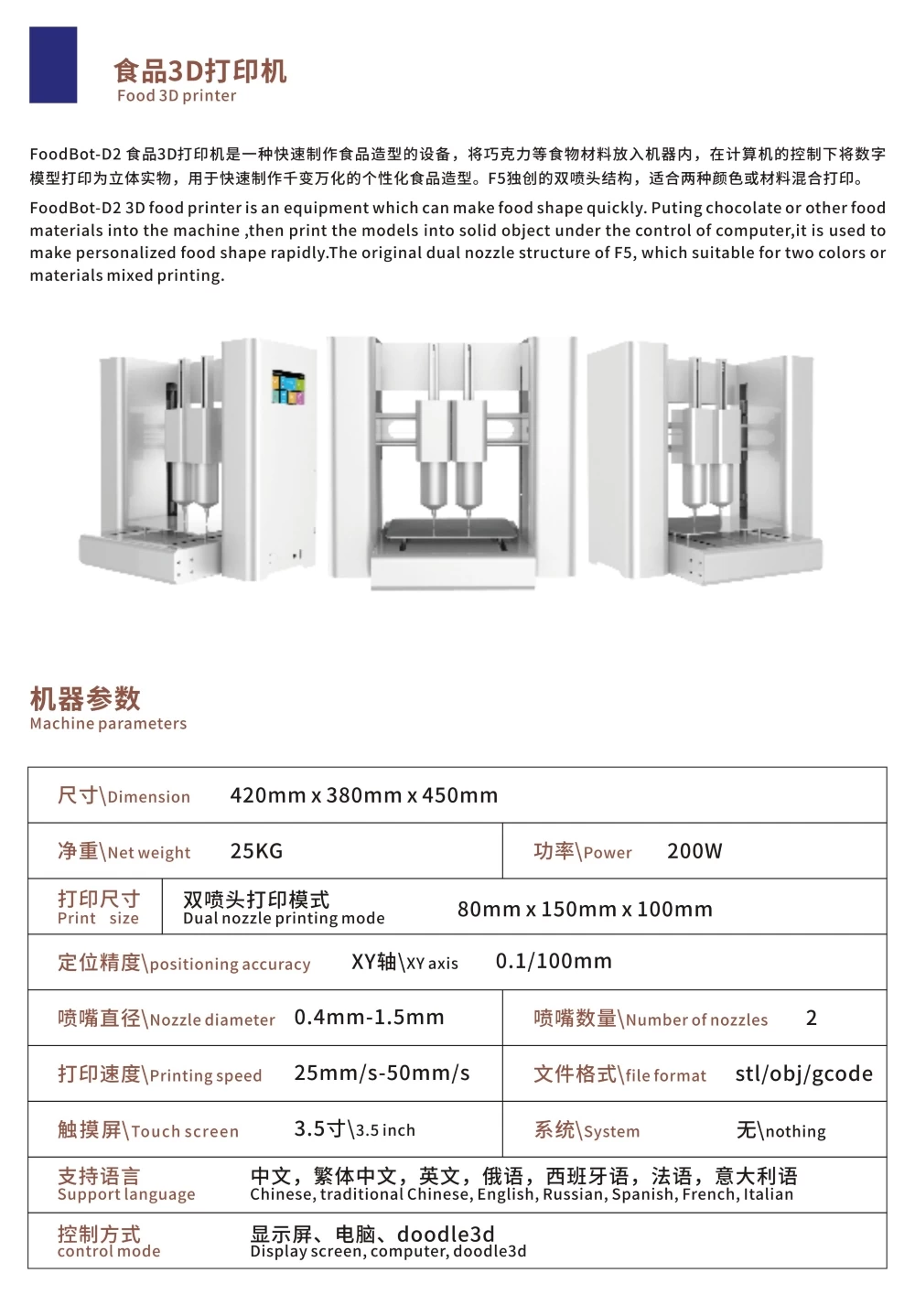 Foodbot D2 Multi Ingredient Dual Head Food 3D Printer