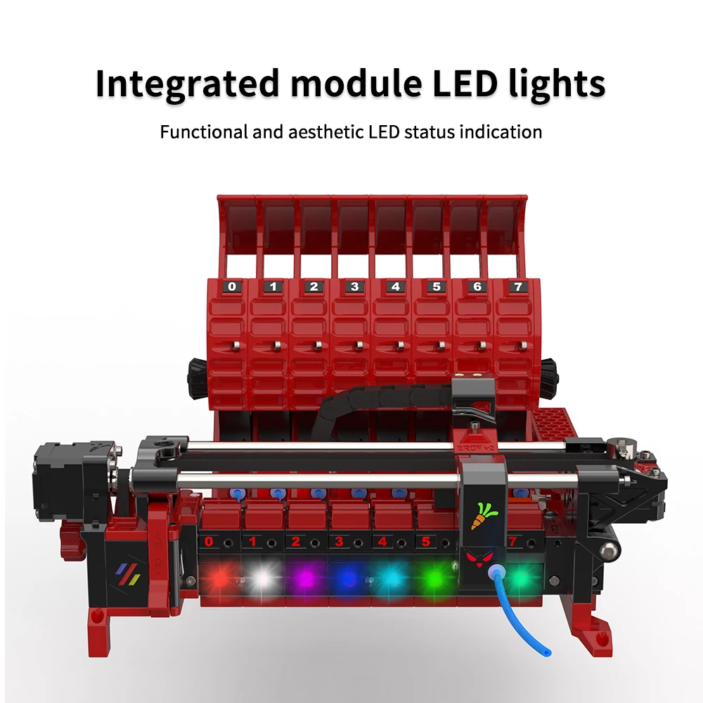 The Rabbit multi-color extruder system is a consumable switching device that allows a single machine to automatically switch between multiple different consumables or materials to print models in the same printing process. The replaceable consumable unit of the product is divided into 8 Channels. Model with 12 Channel. Applicable models: VORON 2.4 R2, VORON Trident, VORON Switchwire, can also run Klipper and possibly RRF on any