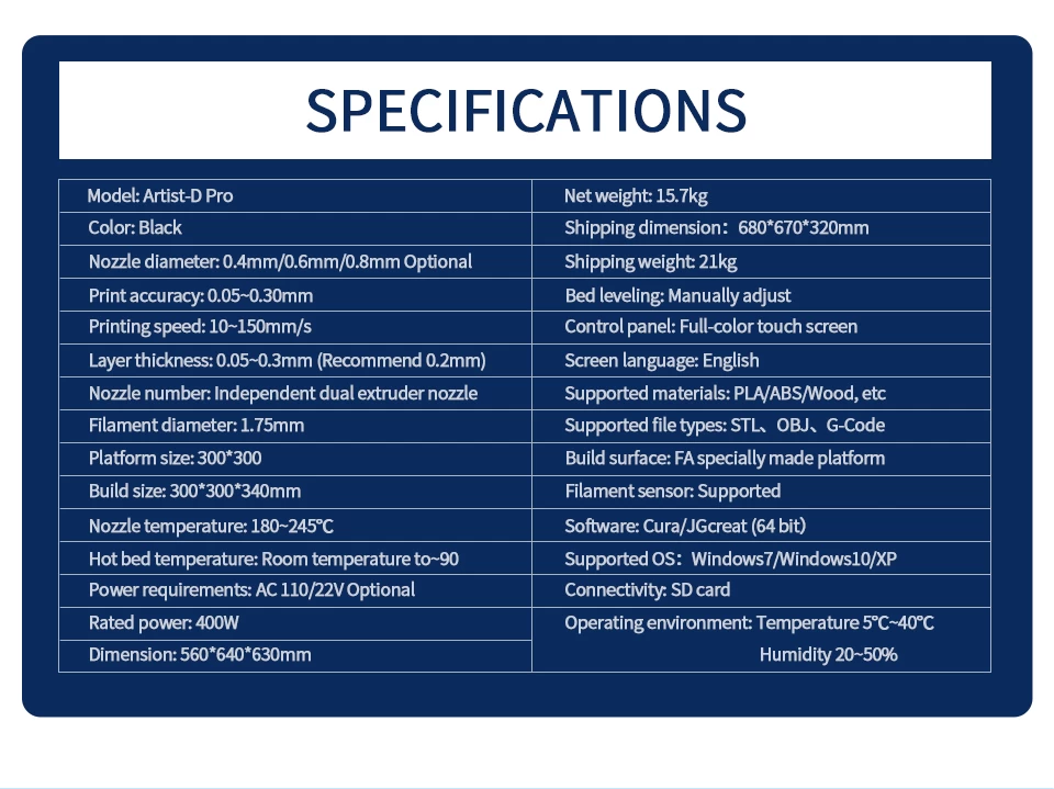 • JGMaker Artist D Pro IDEX 3D Printer