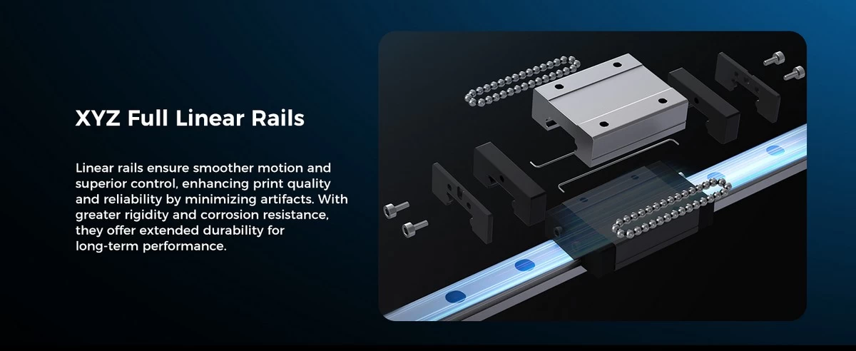 Engineered for Precision & Durability – Full Linear Rails on All Axes: