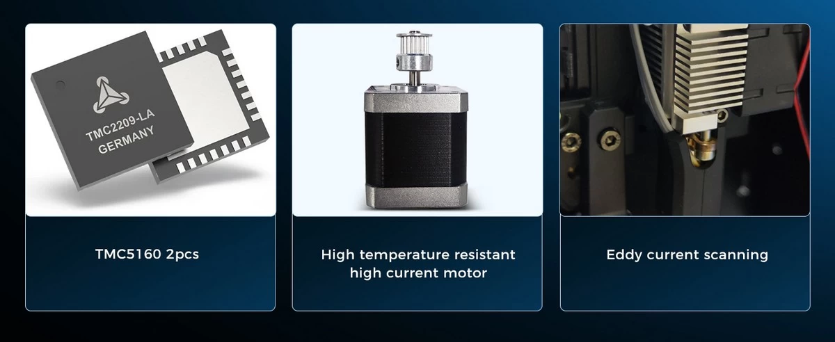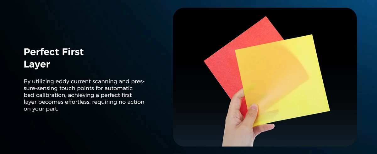 The next-generation V3.0 auto-leveling system combines eddy current scanning and pressure sensing to deliver pinpoint bed calibration. The contactless eddy current sensor quickly maps the Z-axis compensation grid using magnetic induction, while the pressure sensor fine-tunes exact touchpoints—ensuring flawless first layers with zero user input.