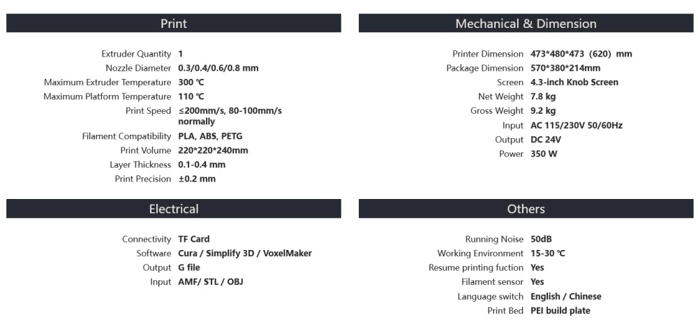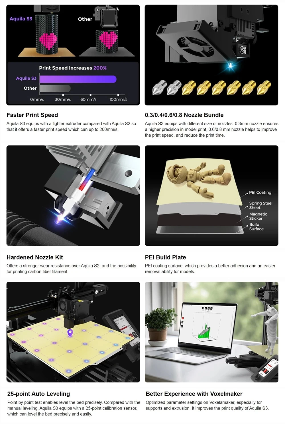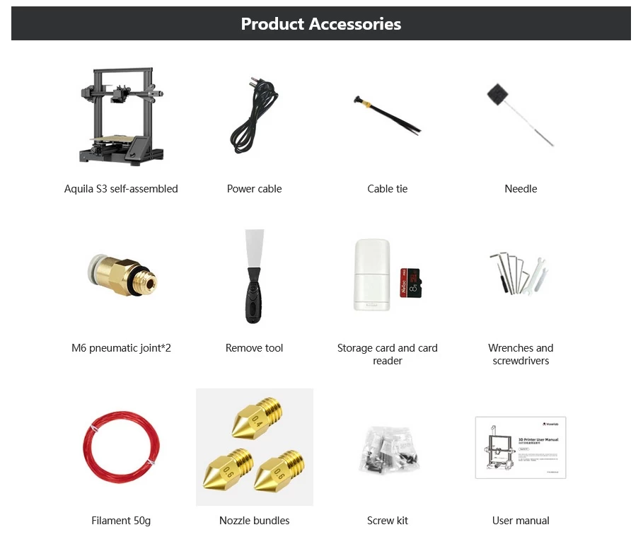 Voxelab Aquila S3 Hardened Nozzle 3D Printer Kit